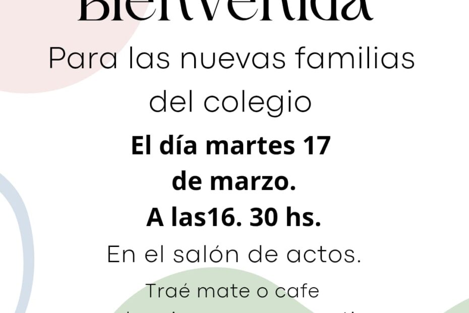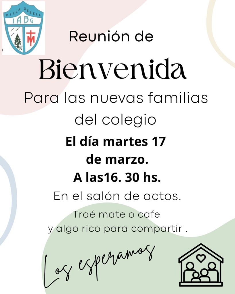 Estimadas familias: les hacemos llegar una invitación de la Unión de Padres para todos las familias nuevas del colegio (de todos los niveles), que se hayan incorporado a la institución en este ciclo 2026. Es para compartir un momento fraterno y darles la bienvenida al IABG. Es el martes 17/03 a las 16:30hs en el salón de actos del colegio. Los que quieran venir puedan traer mate y algo para compartir. LOS ESPERAMOS!!!